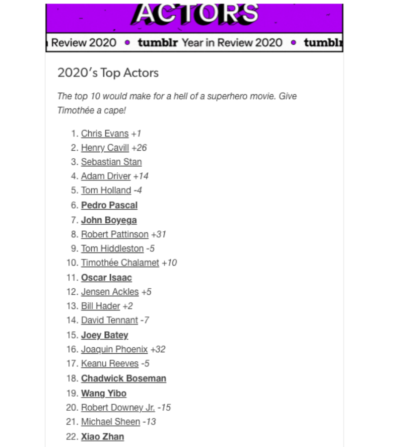 另外,肖戰和王一博更入圍了2020年度男演員Top 50!!!!王一博入圍2020年度全球男演員Top50位列19位,亞洲演員最高位!!!!肖戰則入圍2020年度全球男演員Top 50位列22位!真的是演員戰啊啊啊啊啊啊!