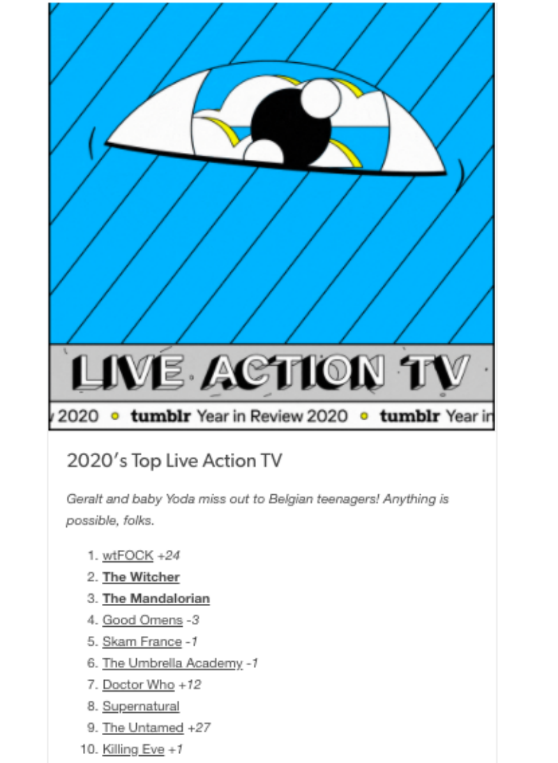 真的只能表示大寫的牛逼!!!!表示Tumblr公布了2020年全球電視劇熱度排名前50的電視劇,結果…去年已經上榜的《陳情令》,再度上榜!!!!