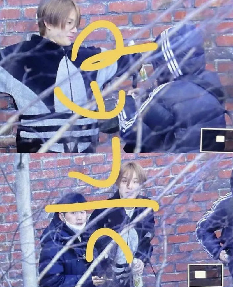 不過這個帖在韓網引起的爭議,似乎更多是在拍攝者身上!被公開的圖上的水印,以中文寫著「一個路人」,不少NCT粉絲都表示這個所謂的“粉絲”其實是私生飯!最重要的是,從拍攝角度來看,這個私生很可能是躲在了樹上拍攝…所以廷祐和另一個成員楷燦才會露出被嚇到的表情!