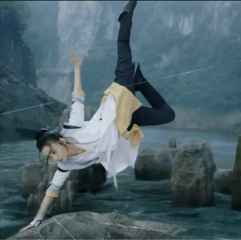 《有翡》播出之後就引起很多討論話題,當中討論度最高的,肯定就是將原著中洗墨江上的牽機線還原了的部分!趙麗穎飾演的周翡,就是在這裡初遇王一博飾演的謝允,也在這裡和魚老學閉眼練刀!但其中周翡躲避牽機線的鏡頭,卻引起了高度高論!先來看看這部分的動作~