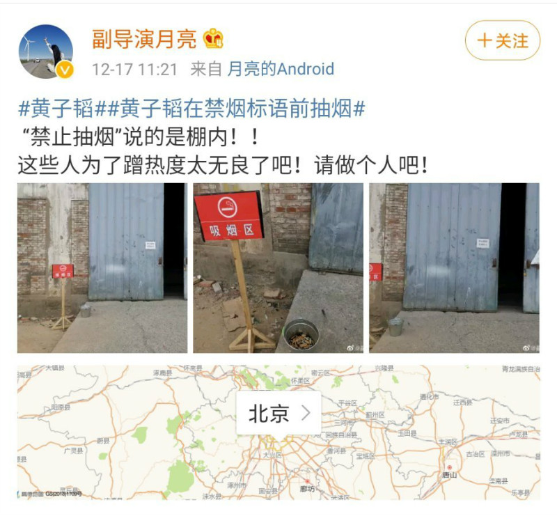 嗚哇!不愧是黃子韜!表示17號早上,有媒體發佈了黃子韜在劇組抽煙的照片,表示黃子韜公然在禁煙區抽煙!
