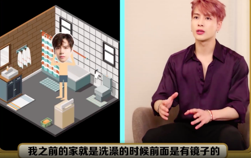 王嘉爾回答:「我之前的家就是洗澡的時候,前面是有鏡子的,有些時候我不看也得看,是因為怕自己胖了!」字幕靈魂反問:「王嘉爾是有肥肉的人嗎?」沒錯!可能嗎!可能嗎!!!!