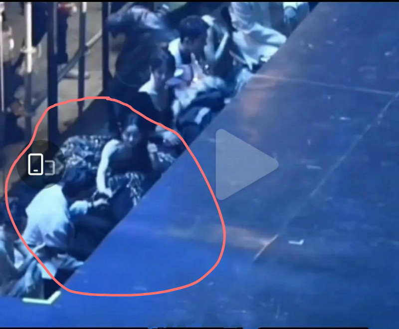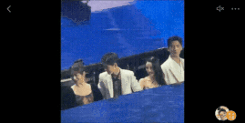在飯拍視角下,拍到了8人在升降台下的互動,先是有翡CP,我們的周翡趙麗穎,貼心的幫謝霉霉王一博遞麥克風!