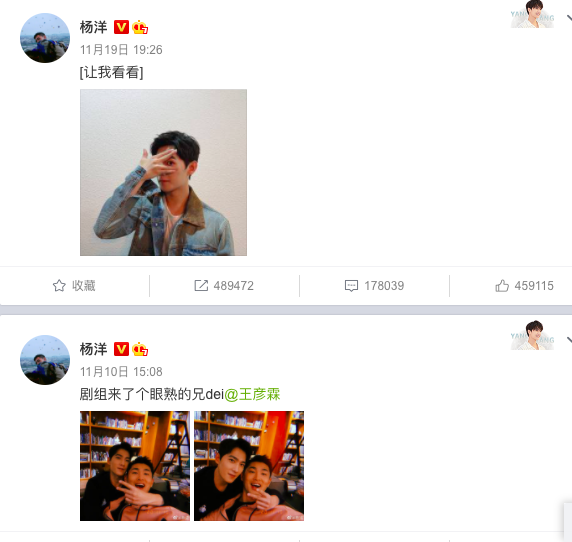 另外憑著對楊洋發博的熟悉,粉絲合理懷疑這不是本人發的~因為除非發宣傳文,如果這些楊洋個人發的貼文,一般不會用標點符號~來看看之前楊洋發過的個人貼文例子~