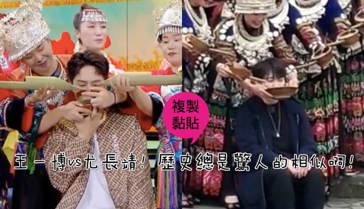 但絕對不能說我們的小尤看起來很軟弱,因為遇上了熱情的苗寨姑娘,就連酷蓋王一博也非常無助!!來看看曾經在《天天向上》,被餵迎門酒的王一博,反應和尤長靖完全一模一樣啊!