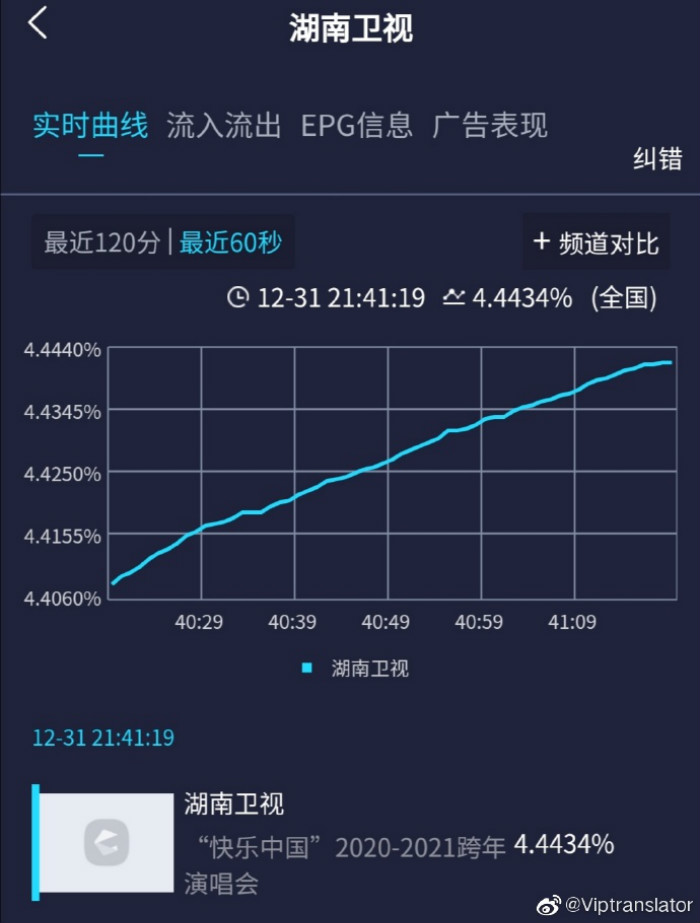 只說沒有信服力,立刻有最新數據出來,表示王力宏和王一博《龍的傳人》這段表演一出來,收視立刻猛漲!!!第一段王力宏獨唱部分,收視突破4.2+,王一博出來後收視突破4.3+,但兩人一RAP,收視立刻飆升到4.44+,今晚湖南衛視最高峰! ​​​​