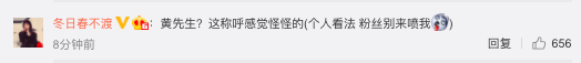 Angelababy的聲明文一出,就有不少網友對於Baby稱呼黃曉明“黃先生”十分納悶:「黃先生?怎麽感覺好陌生????」、「黃先生?這稱呼感覺怪怪的(個人看法 粉絲別來噴我)!」、「為啥叫黃先生,這麽陌生嗎,不會真離了吧!!!!」但更多的是粉絲對於baby的支持,表示她真的辛苦了~