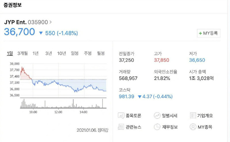 於是所以,JYP股價在6號這天下跌了1.48%。