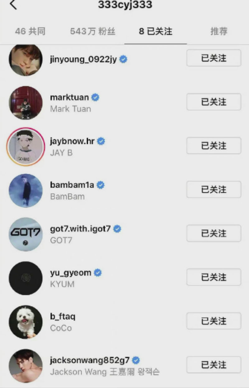 JYP老闆朴振英INS取關BamBam,朴珍榮和段宜恩,只剩下王嘉爾,崔榮宰,金有謙。朴振英原本就未關注隊長JB的INS。什麼操作?JYP朴振英連接取關GOT7成員!