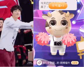 來看看可愛的肖戰穿著小牛衣服,和福牛“一起跳舞”的可愛畫面吧!