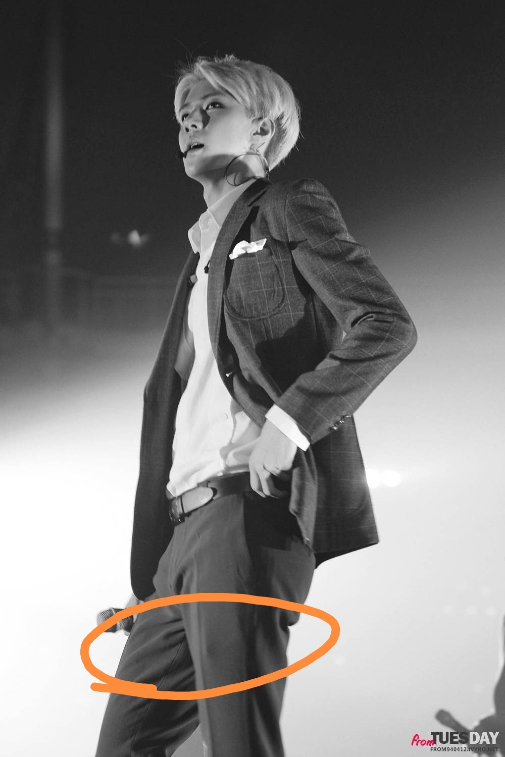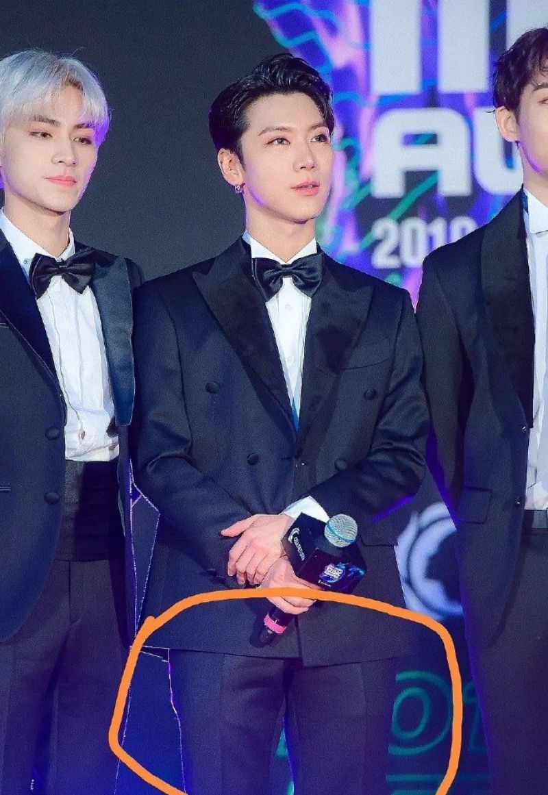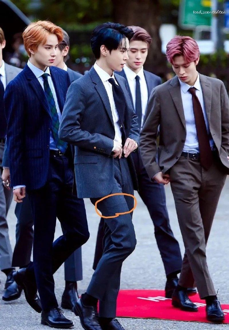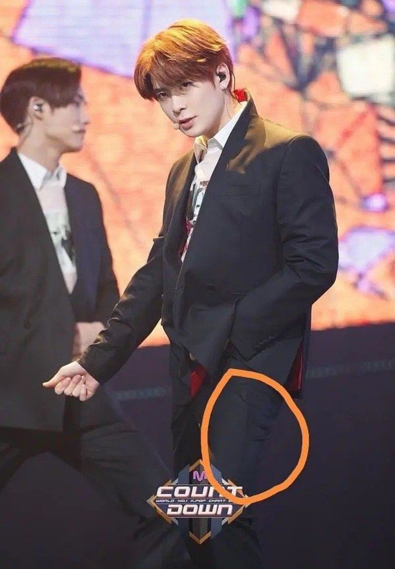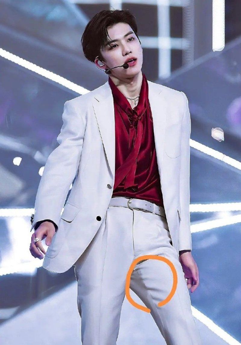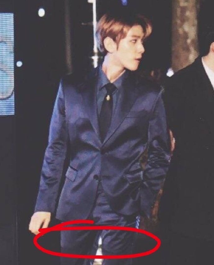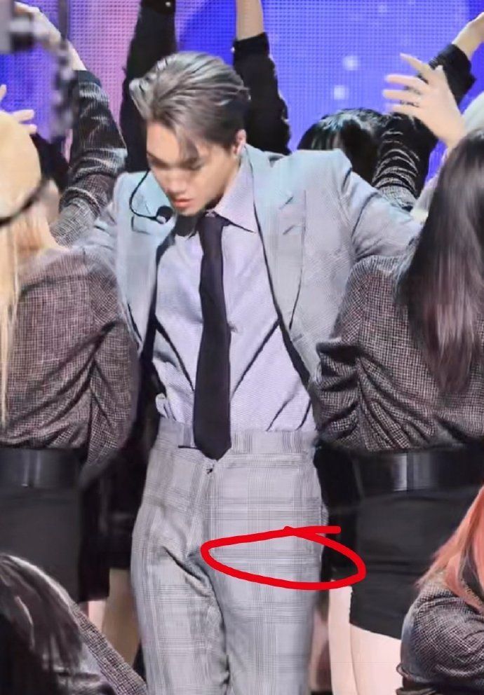 啊不然這張呢?看得見西裝褲下的痕跡了吧?