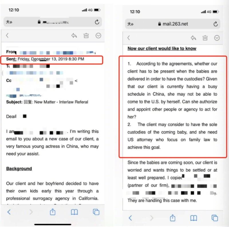 另外根據記者掌握的一份郵件,都先是鄭爽從2019年12月13日開始,都不停和國內律師與美國律師溝通,有關孩子撫養權的問題。