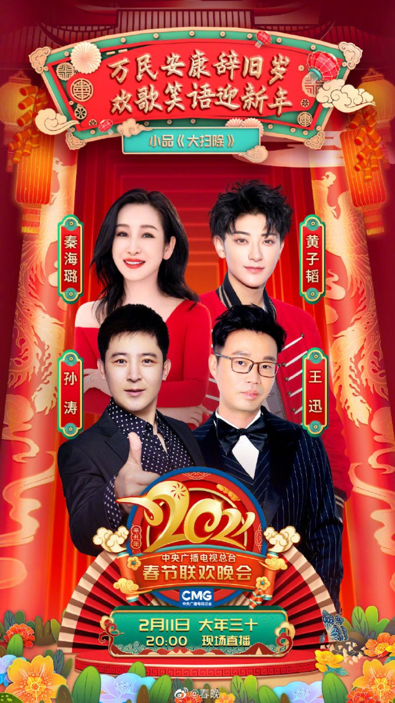 孫濤、王迅、秦海璐和黃子韬共同演繹小品《大掃除》,笑料滿滿,發人深省。
