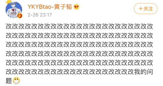 隨後,黃子韜就元宵晚會造型引起粉絲群不滿特別發博,連發了100多個改字:「改改改改改改改改改改改改改改改改改改改改改改改改改改改改改改改改改改改改改改改改改改改改改改改改改改 改改改改改改改改改改改改改改改改改改改改改改改改改改改改改改改改改改改改改改改改改改改改改改改改改改 改改改改改改改改改改改改改改改改改改改改改改改改改改改改改改改改改改改我的問題」