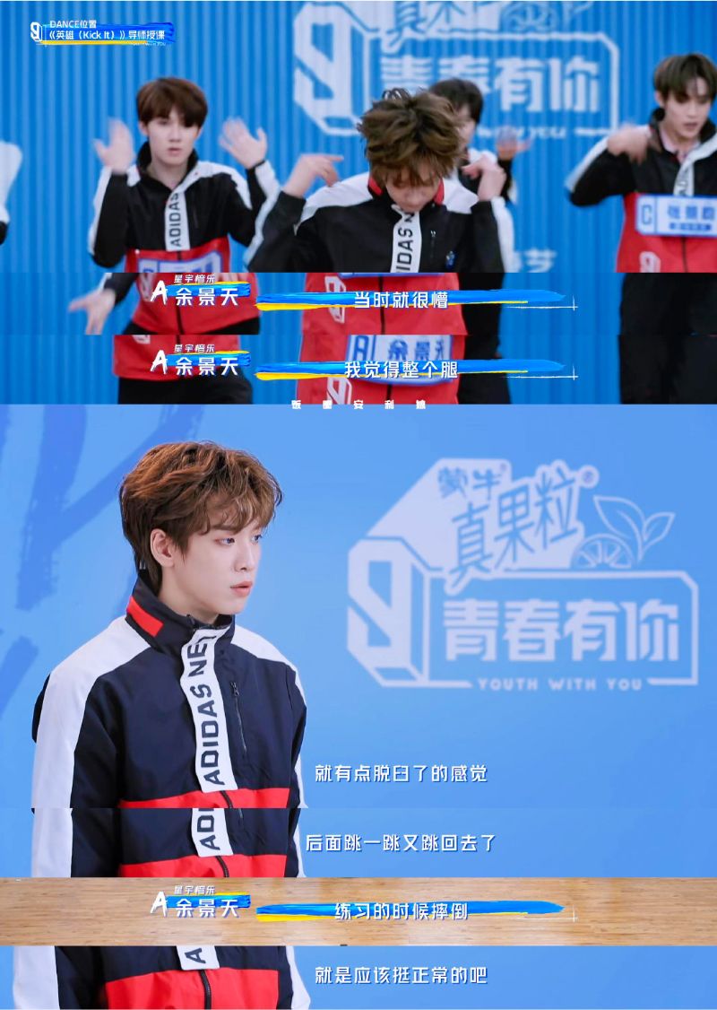 是噠!這裡要給Tony掌聲鼓勵!表示《青春有你3》進入第一次公演,而余景天的第一次公演就是跳NCT 127的《英雄(Kick It)》!但沒想到在練習時,我們的Tony在做一個跳躍動作時,當場就扭傷了!