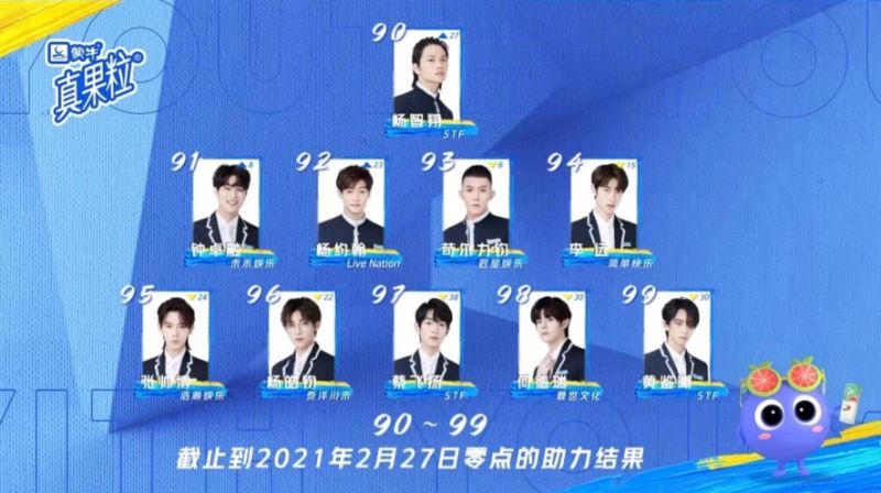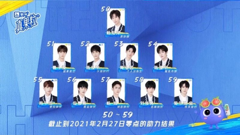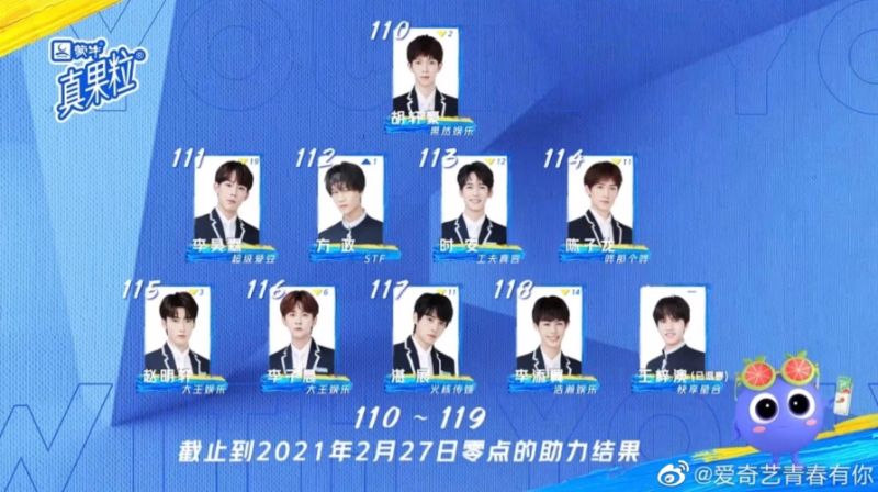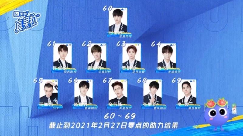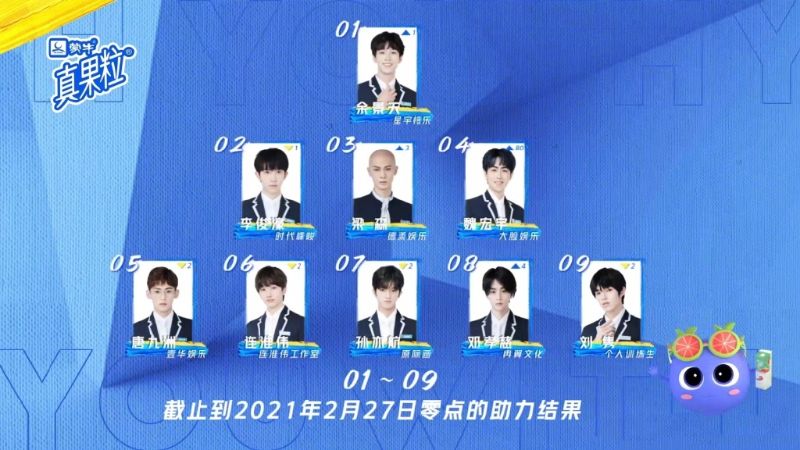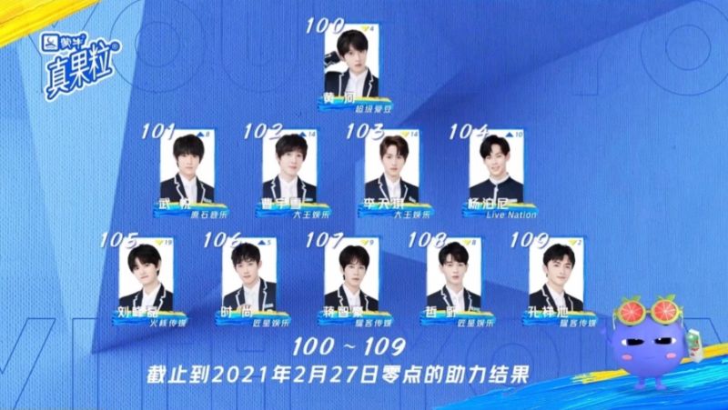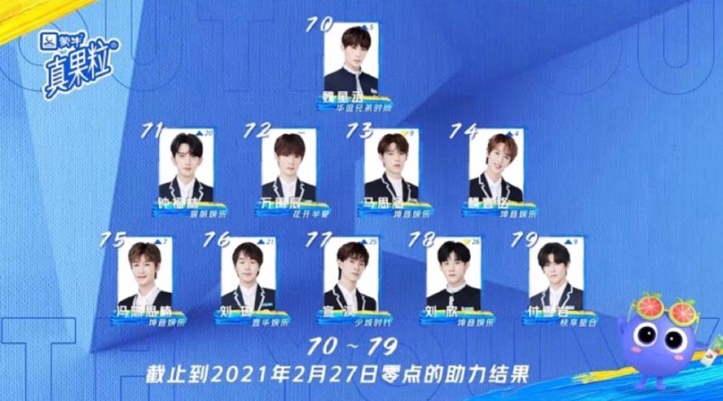 第10-19名:十七、陳俊豪、孫瀅皓、姜京佐、艾克里里、常華森、徐新馳、張思遠、彥希、羅一舟