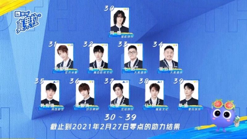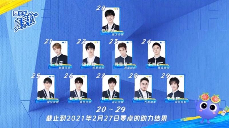 第20-29名:鄧澤鳴、王浩軒、邱丹楓、段星星、王南鈞、徐子未、楊昊銘、梓渝、陳鼎鼎、牛在在