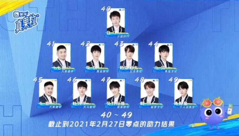 第40-49名:白丁、十七君、李欽、橋本裕太、小河、卡斯、杜天宇、艾力扎提、柯爾、龔毅星