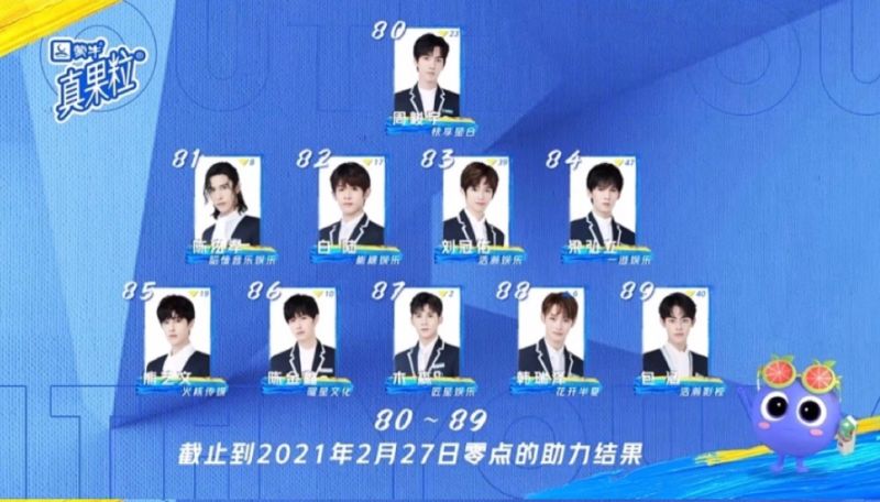 第80-89名:周駿宇、陳泫孝、白陸、劉冠佑、梁弘立、熊藝文、陳金鑫、木森、韓瑞澤、包涵
