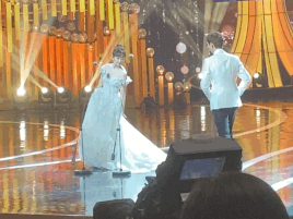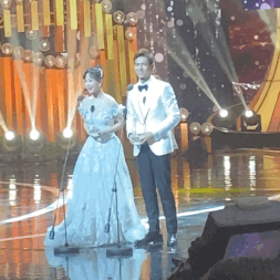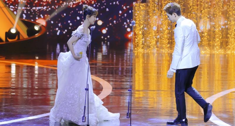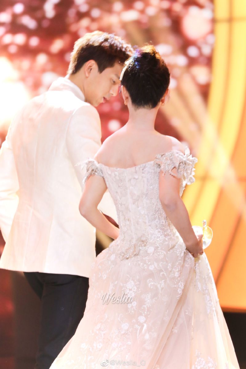 不過可愛的是,當李現上台時,原已經站在台上的楊紫,立刻大動作的把自己的裙擺拉好,讓原本想彎腰幫忙拉裙擺的李現,彎腰彎了個寂寞啊!小猴紫真的太可愛了!