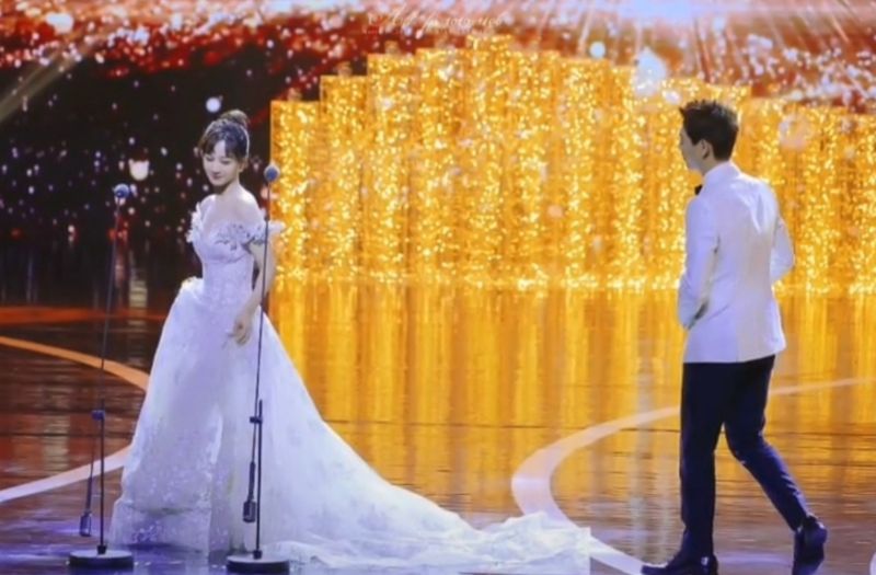不過可愛的是,當李現上台時,原已經站在台上的楊紫,立刻大動作的把自己的裙擺拉好,讓原本想彎腰幫忙拉裙擺的李現,彎腰彎了個寂寞啊!小猴紫真的太可愛了!