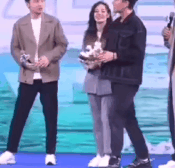 再不然就是穿著艷麗的禮服,結果裙擺在台上被高跟勾住了~顆顆顆~