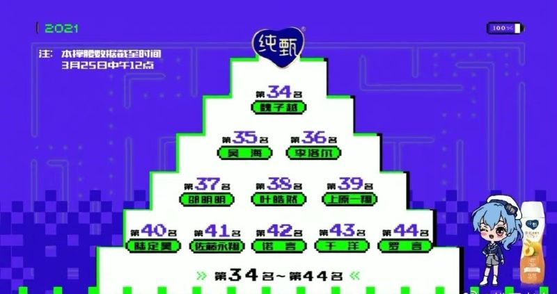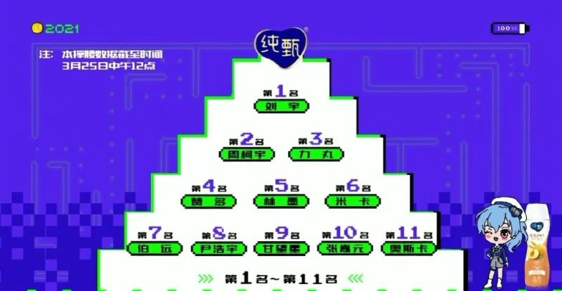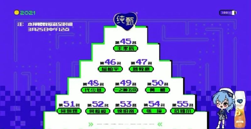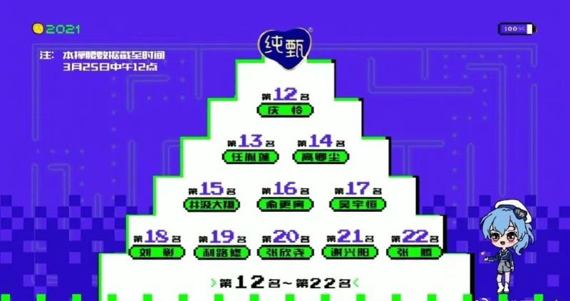 以上,就是創造營2021最新排名啦!表示就算沒在追創都會關心的,自然就是我們以想被淘汰為目標的利路修老師!這次排名刷刷刷又往上升,從原本的29名又來到了第19名上位圈…來!蹲一個利老師奔潰逃跑的視頻吧!