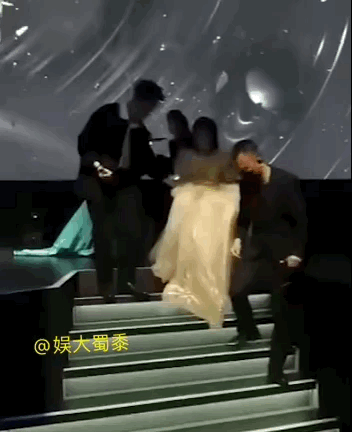 下舞台時,李現先幫忙扶了走在前方的趙麗穎。