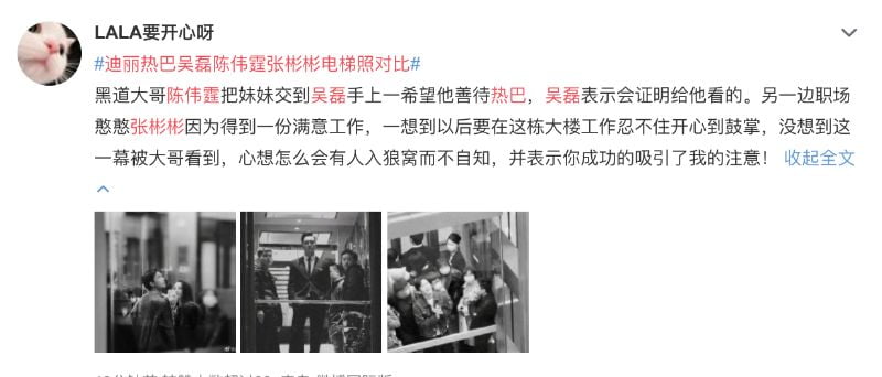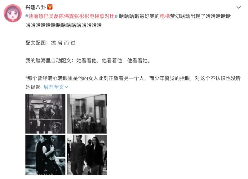 是噠!沒想到一張隨手拍攝的電梯照,居然還能引起網友集體創作慾啊!表示吳磊和迪麗熱巴,以及張彬彬和景甜,剛好都在6號前往新浪大樓掃樓!吳磊男友力MAX!人群中全力護著迪麗熱巴!小說情節照進現實啊!