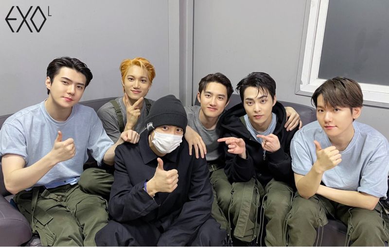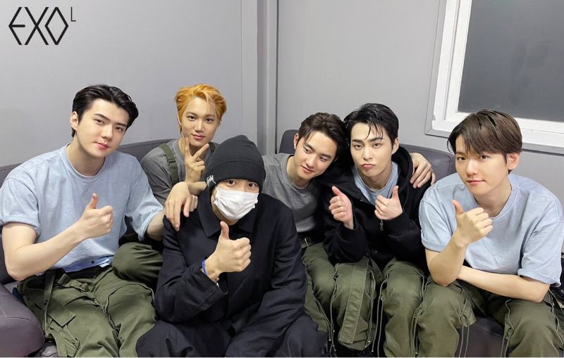 嗚哇!終於等到啦!!表示地球人都知道,每當有EXO成員入伍時,官方都會公開一張成員們的大合照,而標準手勢則是“摸頭”殺!