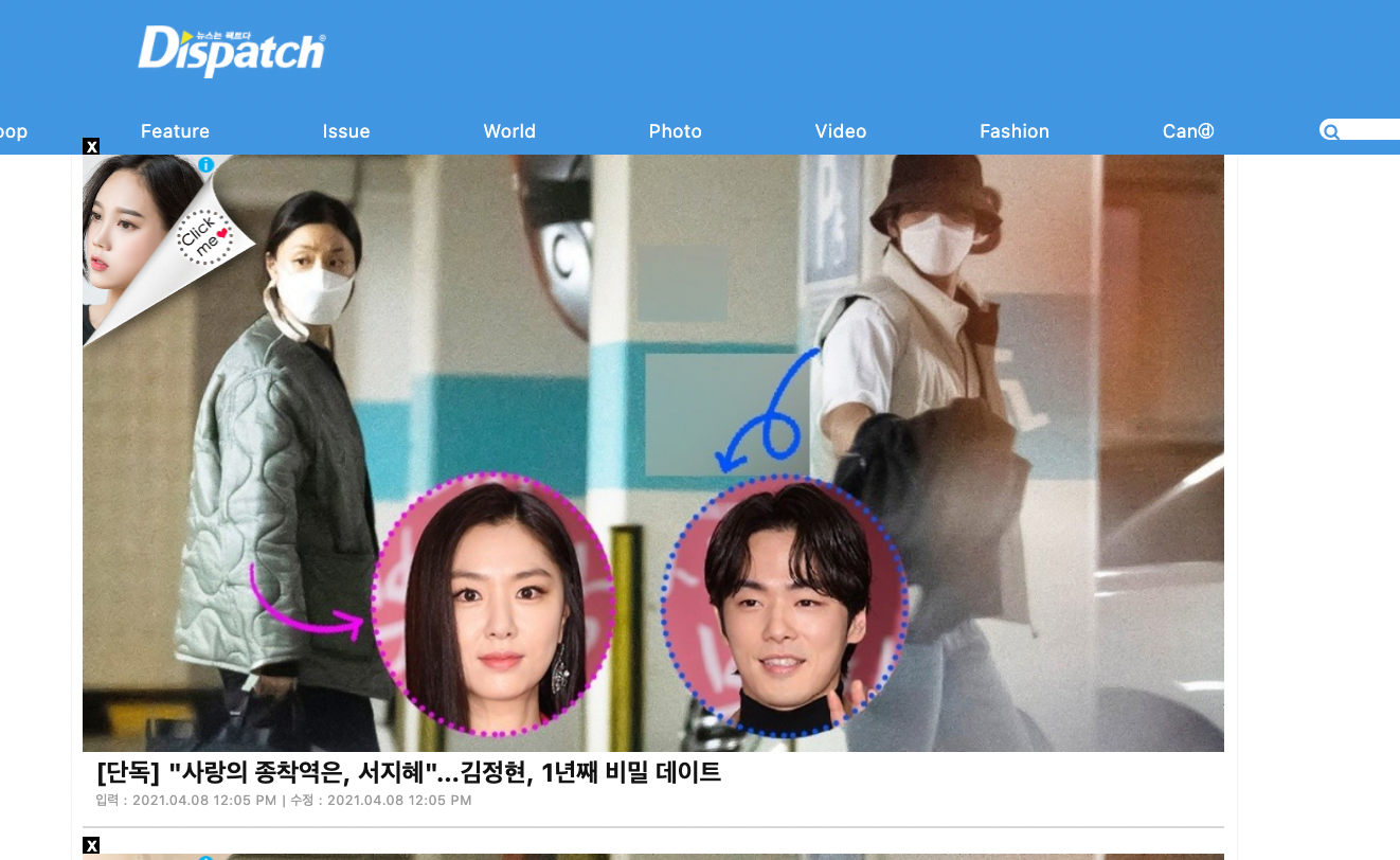 當CP粉心碎時,沒想到DISPATCH也光速公開金正賢徐智慧約會照片!並表示「金正賢徐智慧秘密戀愛一年!」據報道,兩人的約會地點主要是”家”,在10多分鍾的車程中往返于各自的公寓之間。(金正賢去年搬到了徐智慧居住的區域。)