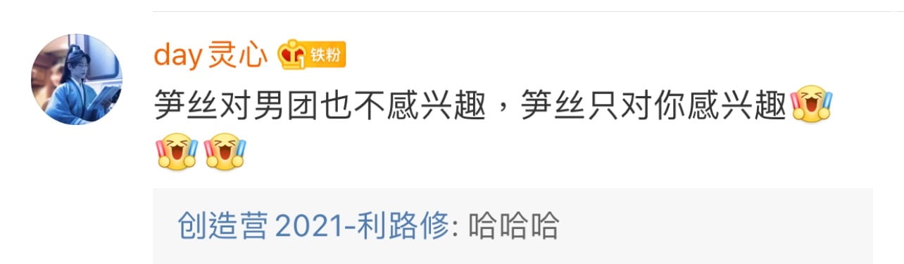 「筍絲對男團也不感興趣,筍絲只對你感興趣」利老師:「哈哈哈哈哈哈」