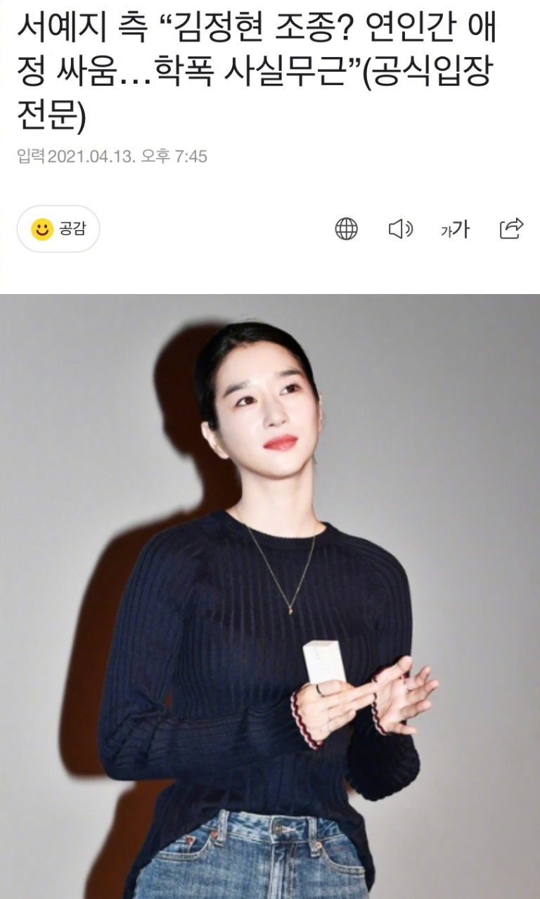 我們看到的對話是戀人間很常見的“帶著嫉妒”的對話,因為戀人間說出這種話是很常見的,雖然沒有公開別的對話內容,其實當時金正賢也有對徐睿知說“不要拍攝吻戲”的要求【當時徐睿知在拍攝韓劇《武法律師》】,之後徐睿知回複“那我也不要做”。這是業內戀人關係的演員之間非常常見的“愛情吵架對話”。」