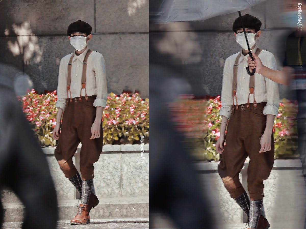 沒錯!貴氣英倫風民國小少爺,昂首闊步,整體構圖看起來就絕了!BUT,站姐精益求精,這不…立刻展示了她高超的P圖技術,經過站姐的修圖,原本的路透圖變成下面這樣👇