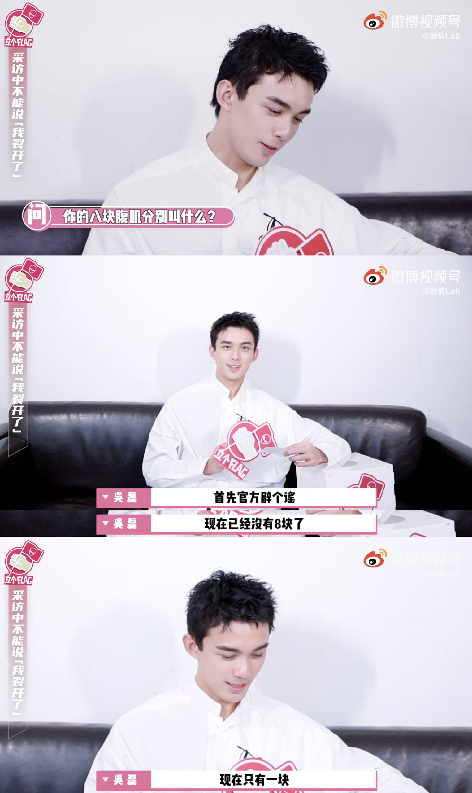 而對於粉絲好奇的腹肌,吳磊會怎麼命名自己的那八塊腹肌呢?吳磊立刻官方在線闢謠,表示:「現在已經沒有八塊了,現在只有一塊!」