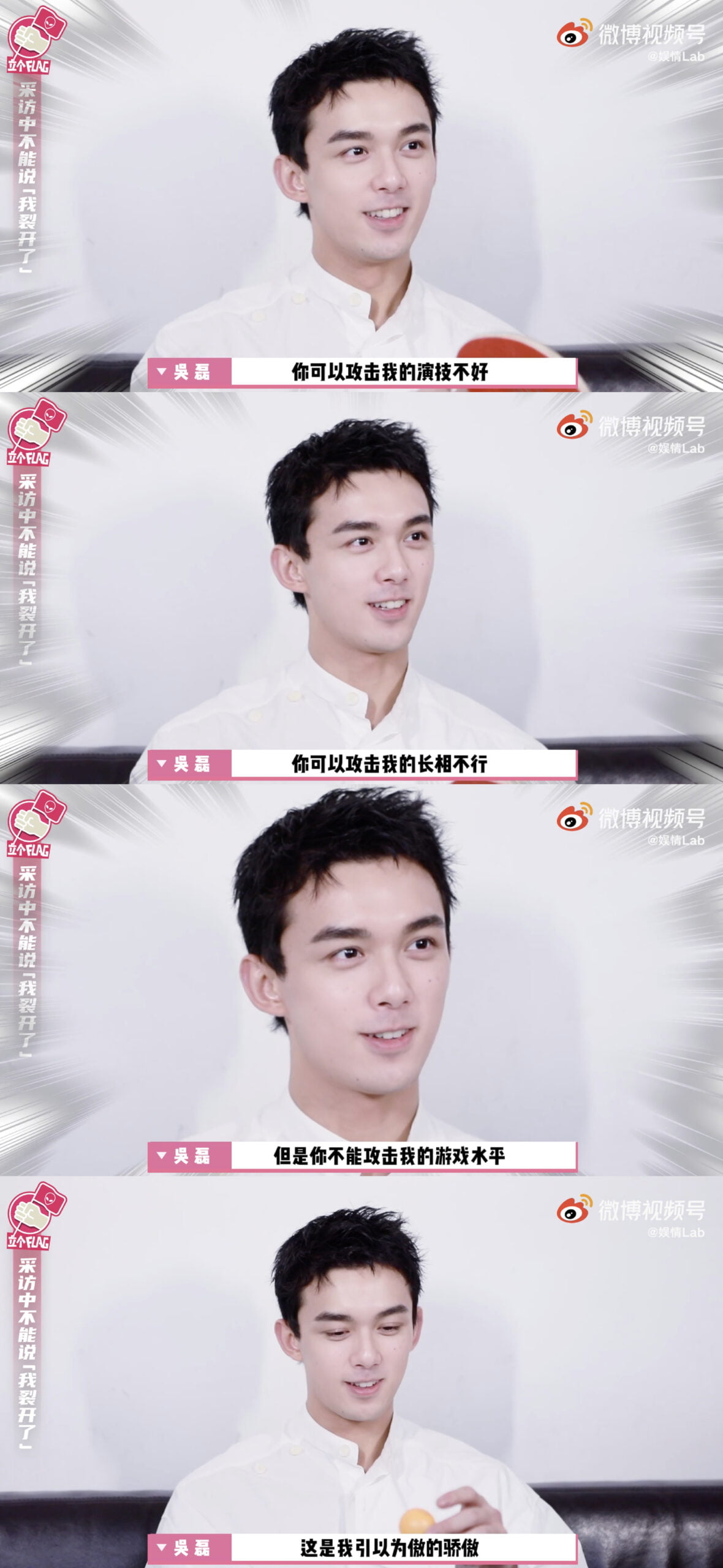那當被問到最大的禁忌,他表示你可以批評他演技不好、長相不行:「當你不能攻擊我的遊戲水平,這是我引以為傲的驕傲!」不愧是拍了《穿越火線》的男人啊!