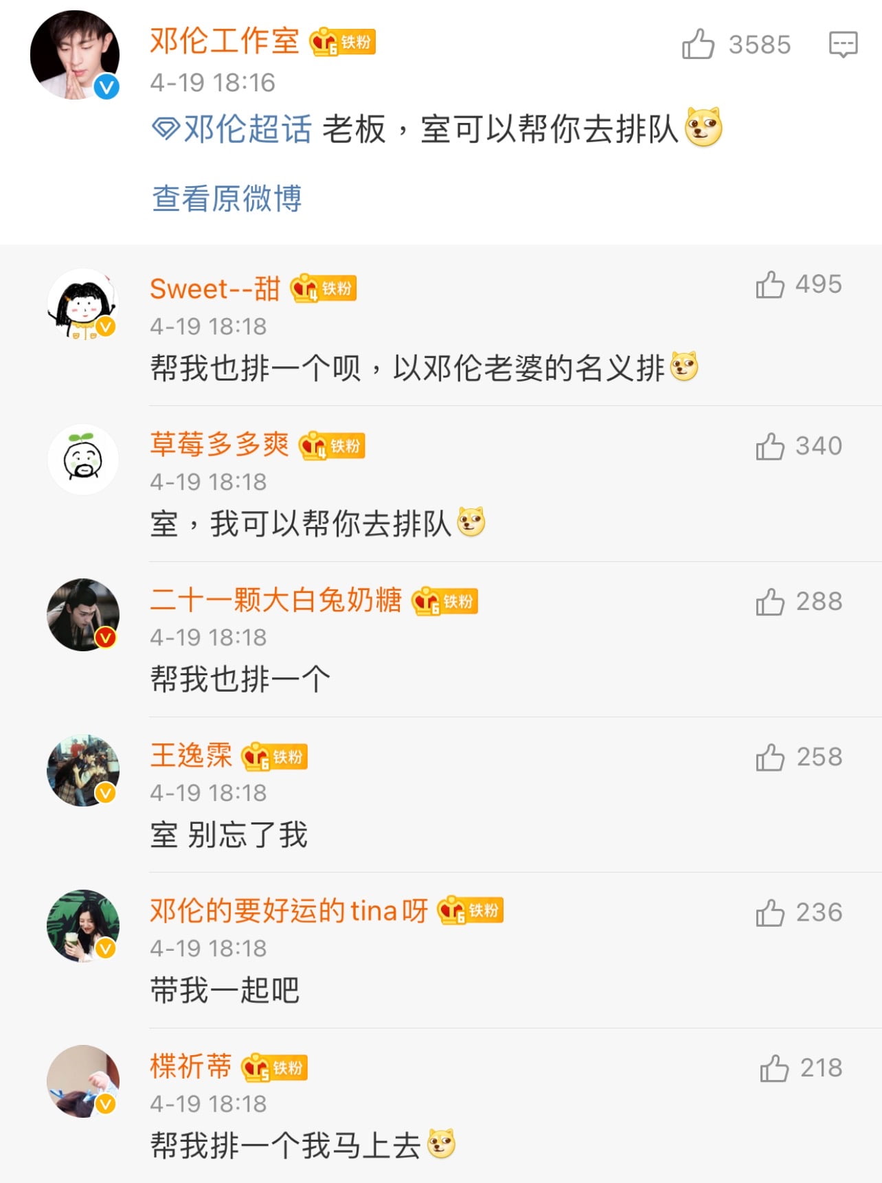 對比之下,鄧倫工作室的職員顯然比較懂得社畜生存之道,立刻回覆老闆貼文表示:「老闆,室可以幫你去排隊!」引來一堆粉絲回覆也要小室代排!哈哈哈哈哈!