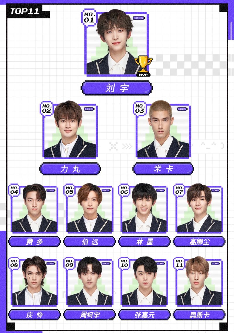 而出道圈的學員則有:劉宇(1)、力丸(2)、米卡(3)、贊多(4)、伯遠(5)、林墨(6)、高卿塵(7)、慶憐(8)、周柯宇(9)、張嘉元(10)和奧斯卡(11)!