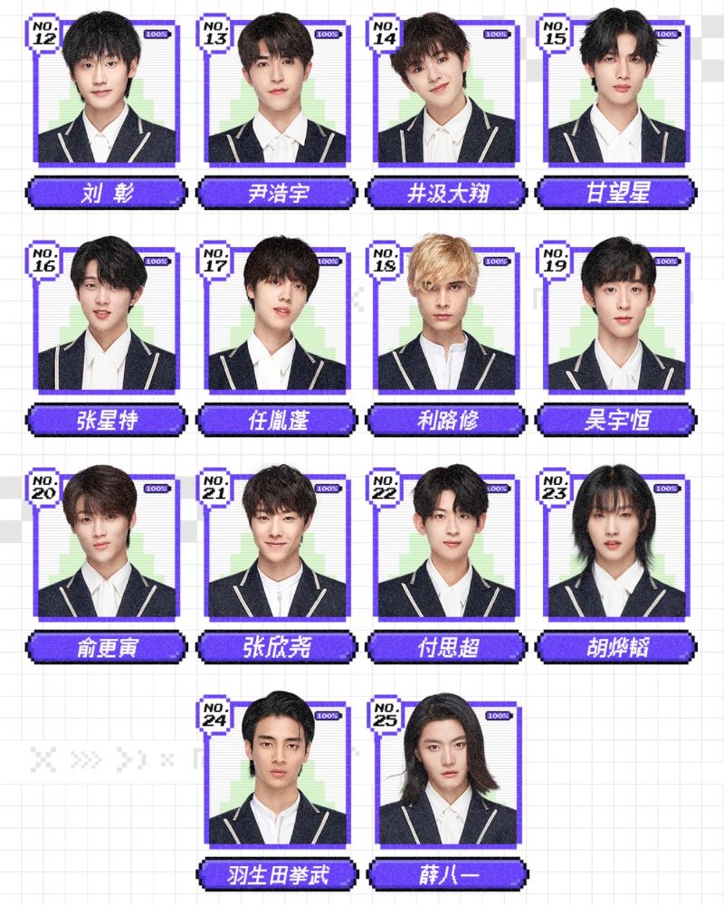 先來看看排在第12-25名的學員,分別有:劉彰(12)、尹浩宇(13)、井汲大翔(14)、甘望星(15)、張星特(16)、任胤蓬(17)、利路修(18)、吳宇恆(19)、俞更寅(20)、張欣堯(21)、付思超(22)、胡燁韜(23)、羽生田拳武(24)、薛八一(25)