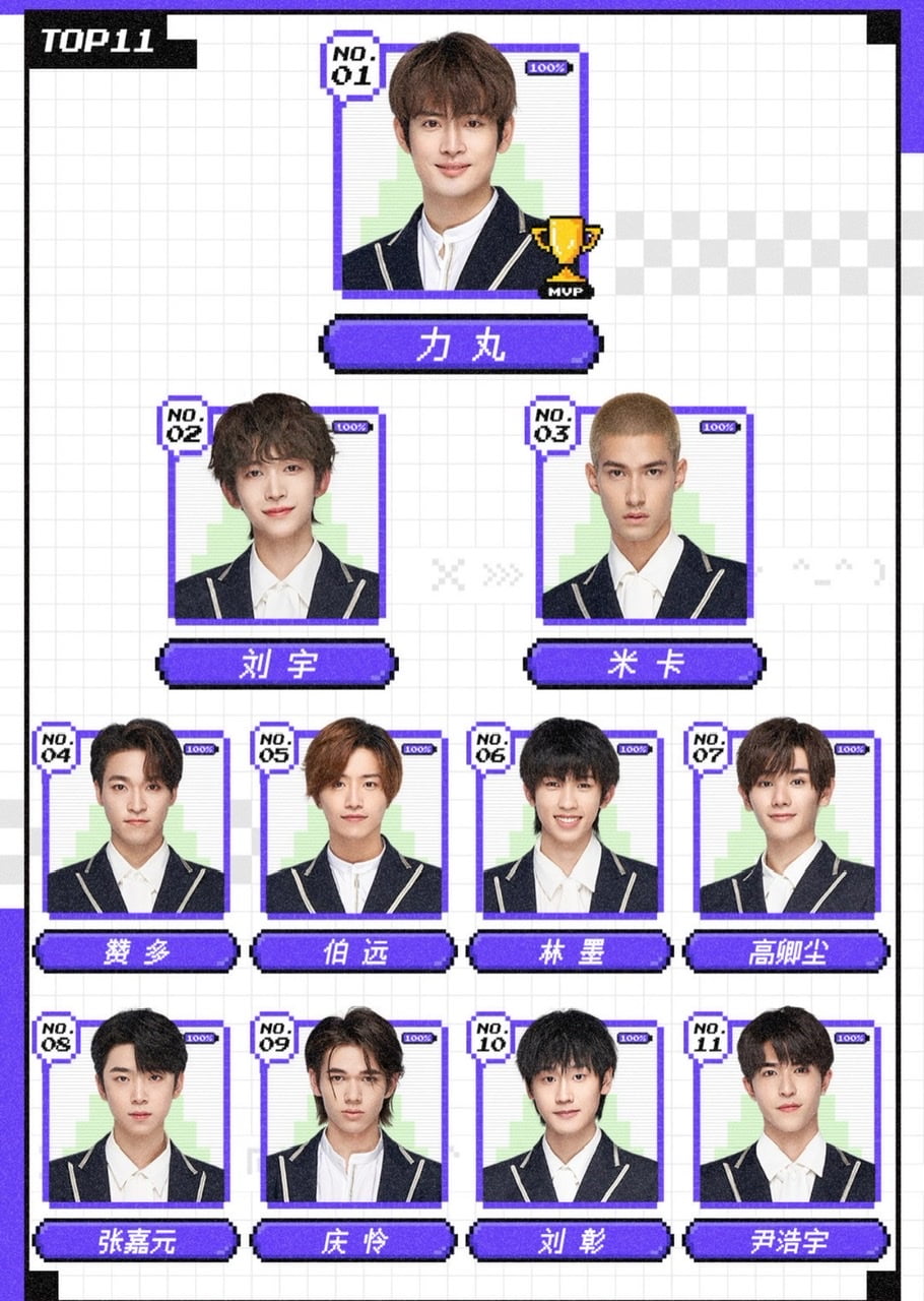 接著出道圈真的讓人大震驚,速看排名:力丸(1)、劉宇(2)、米卡(3)、贊多(4)、伯遠(5)、林墨(6)、高卿塵(7)、張嘉元(8)、慶憐(9)、劉彰(10)和尹浩宇(11)!