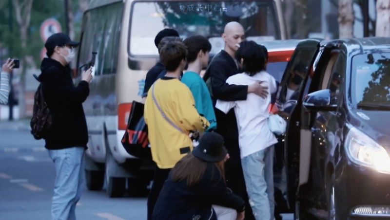 上車前和梁森、十七、徐子未一一擁抱的陳俊豪!