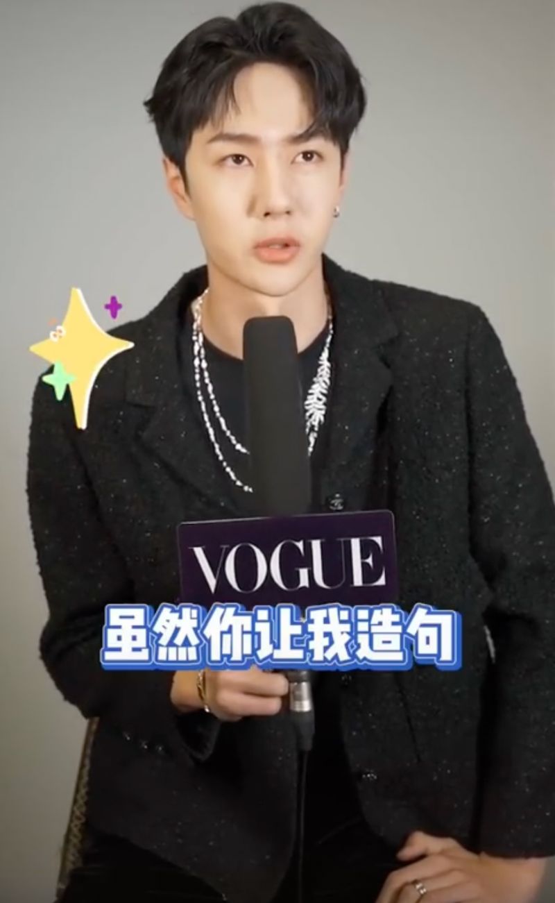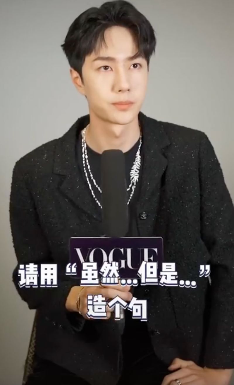 而在Vogue放出的最新短視頻中,記者要求王一博用“雖然…但是…”來造句。