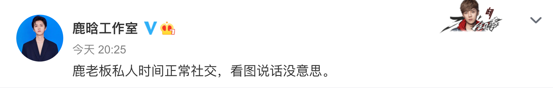 果然,隨著上了熱一之後,鹿晗工作室也已經回應,表示:「鹿老板私人時間正常社交,看圖說話沒意思。 ​​​​」嗚呼~很酷,很直接!