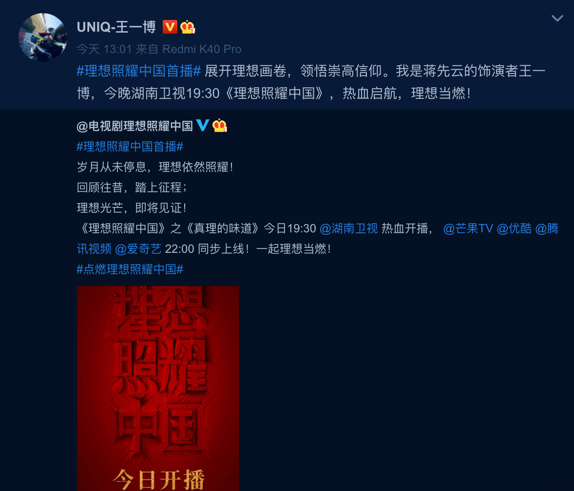 哈哈哈哈,不愧是王一博!換個頭像居然登上了熱搜第一!表示王一博有份出演的《理想照耀中國》5月4日晚首播,而飾演蔣先雲的王一博,配合新劇宣傳,把使用了1年的頭像換!掉!了!