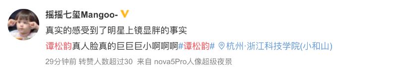 「真實的感受到了明星上鏡顯胖的事實!譚松韻真人臉真的巨巨巨小啊啊啊!!」