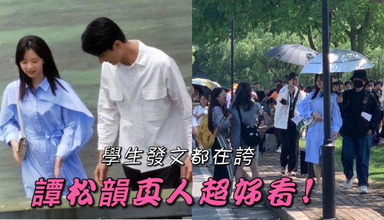 「譚松韻在我們學校籃球場拍戲!!太漂亮了吧!!眼睛好大好可愛!而且碰上我們學校女生看到她尖叫了還比了個噓聲的動作好可愛!!今天我是譚松韻的顔粉!!」