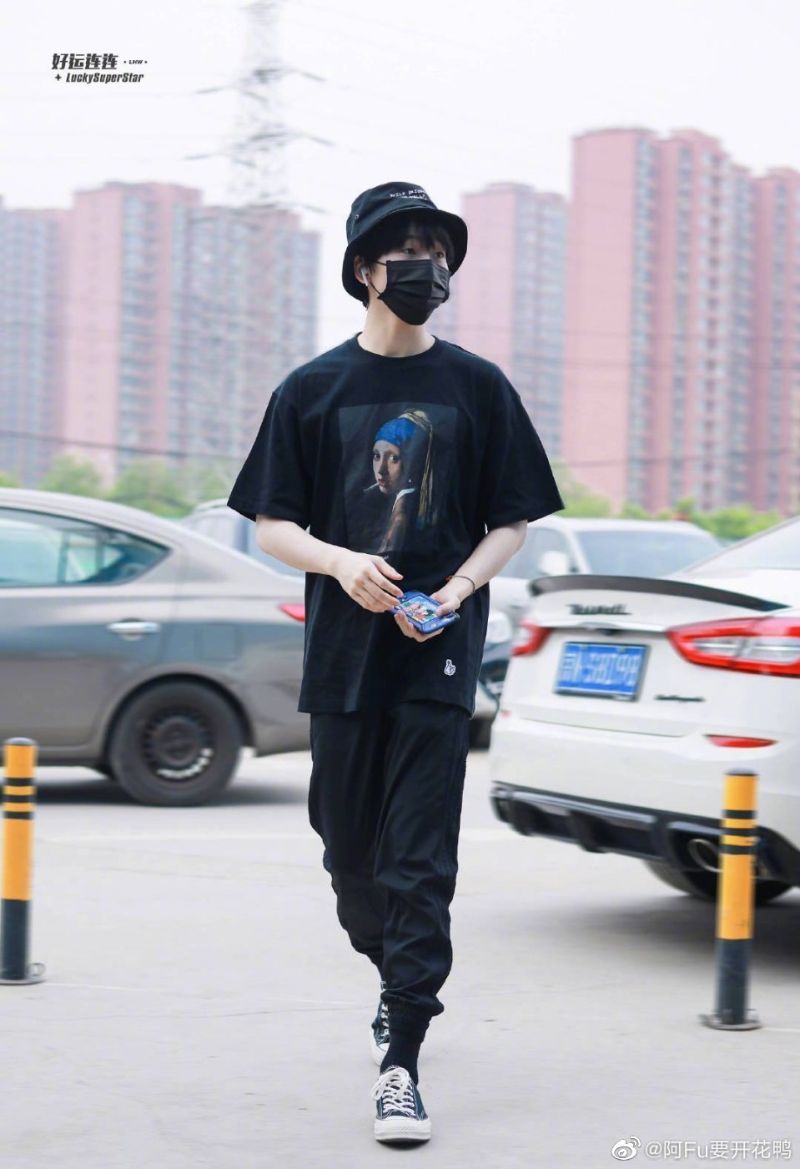 粉絲扒出之前連淮偉曾穿過,疑似吻合條件的漁夫帽和黑色衣服~