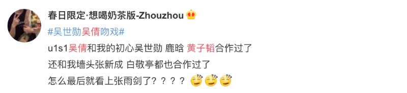 除了羨慕是男神收割機,更多的網友在線疑問…所以和這麼多男神合作過之後,為什麼吳倩最後還會選擇張雨劍?