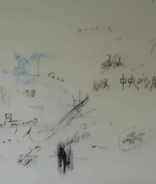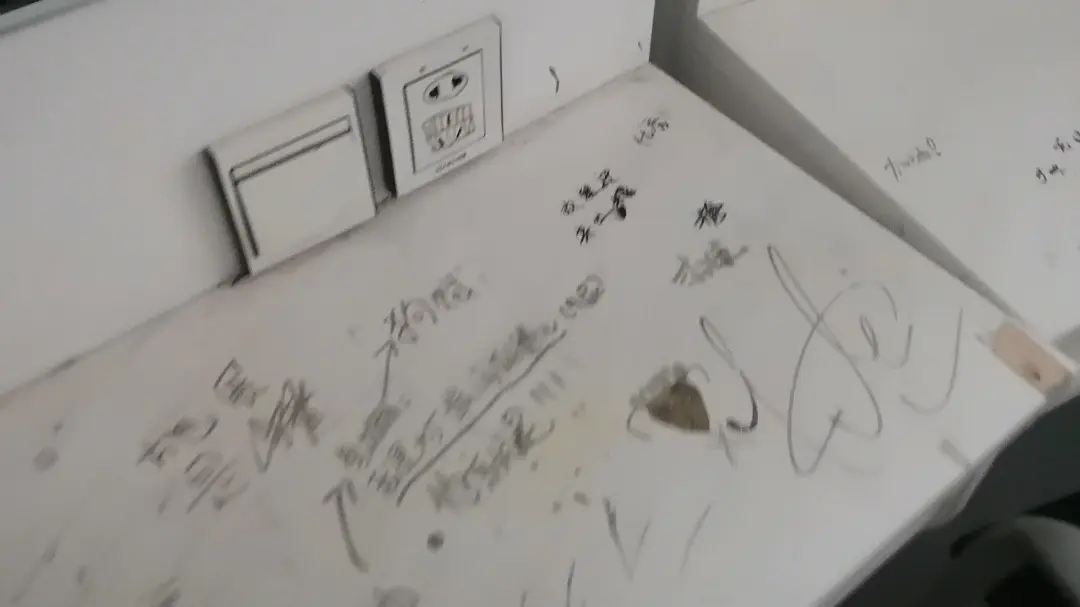 簡單的轉了幾分鍾就走了,因為實在是太亂了有種危房的感覺。某個備采間後面的牆,不知道是誰寫的字。