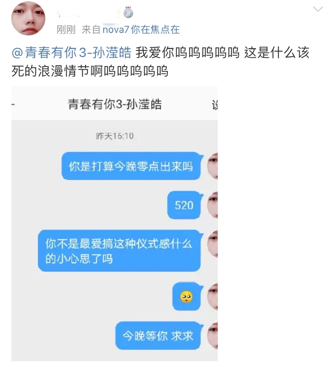 啊啊啊啊啊啊啊啊啊啊!果然是我們對生活很有儀式感孫大龍啊!其實19號的時候,就有不少粉絲私訊孫瀅皓,也預感他可能會在520發出信號!